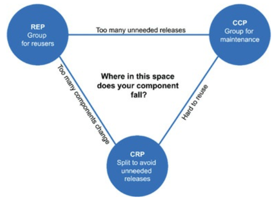 프로젝트 초기에는 CCP가 REP 보다 휠씬 더 중요함. 개발가능성이 재사용성보다 더 중요하기 때문.