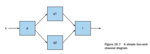 - 자바8 CompletableFutrue 클래스와 자바9 플로API 모두 박스와 채널 다이어그램으로 표현할 수 있다.