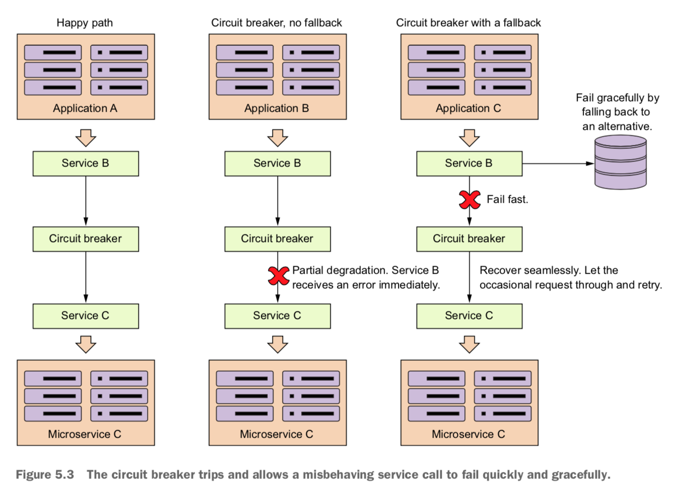 서비스 B는 서비스 C 호출과 관련한 부분만 영향을 받고 나머지 기능에 대해서는 정상 작동하도록 한다.