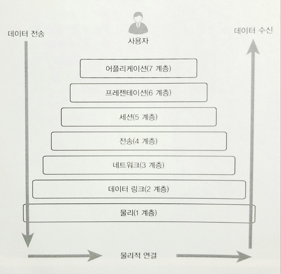 | 7계층 | 응용 | 메시지 | 사용자가 전송하고자 하는 데이터를 메시지 단위로 전송 |
