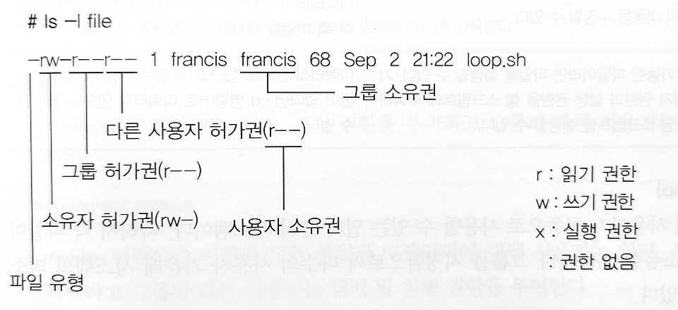 | 읽기 권한 r | 파일의 내용을 확인하거나 복사 | 파일과 디렉터리 확인 |