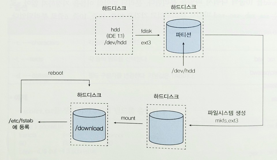 $sudo cat /etc/tstab - /etc/fstab 수정사항을 반영하기 위해 해당 파일시스템 remount