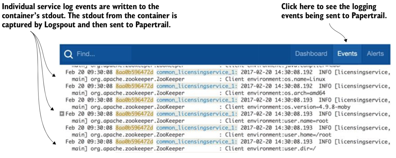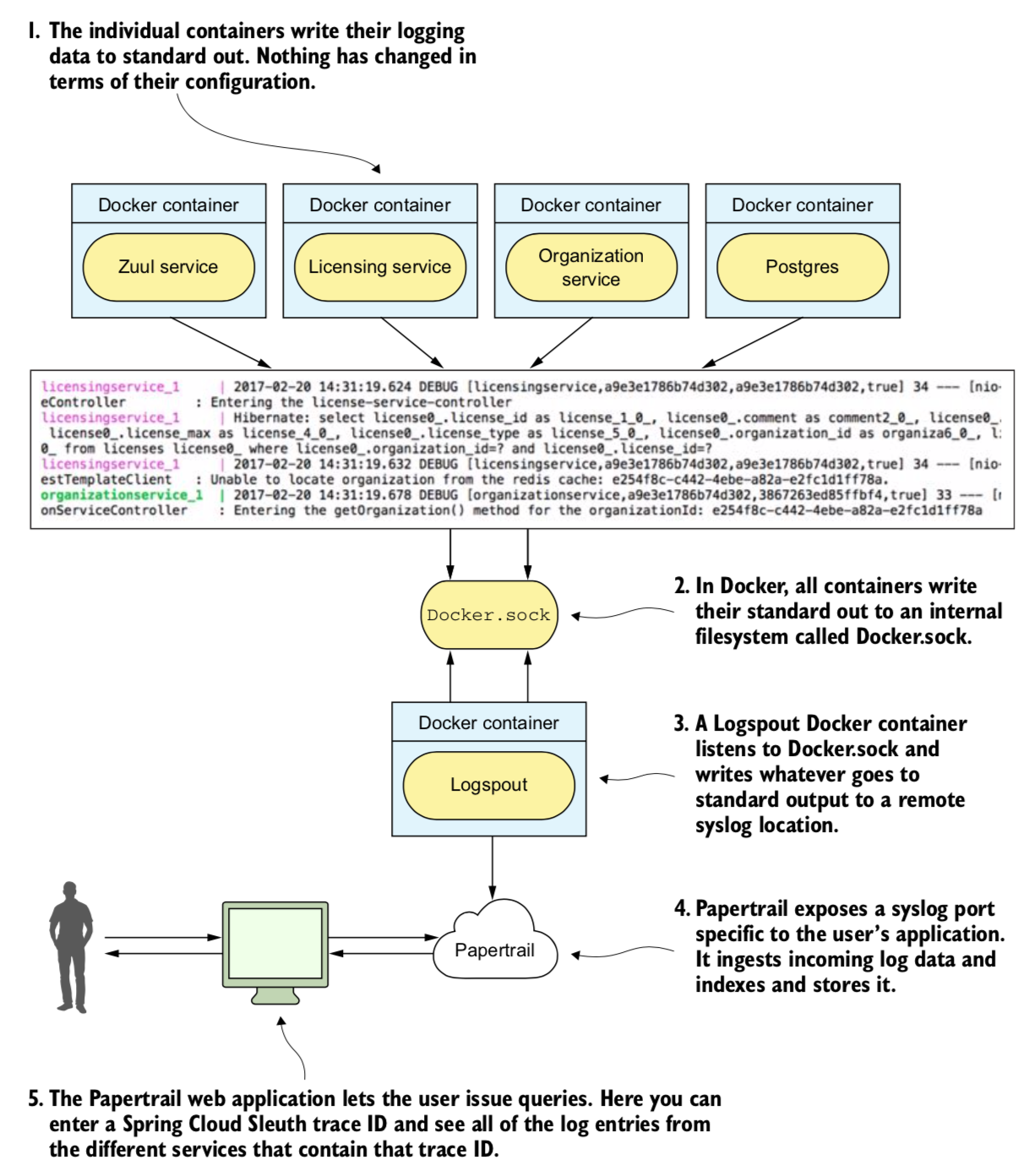 - 도커 컨테이너 로그 스파우트와 클라우드 로깅 플랫폼 페이퍼트레일 과 통합해 로그 수집