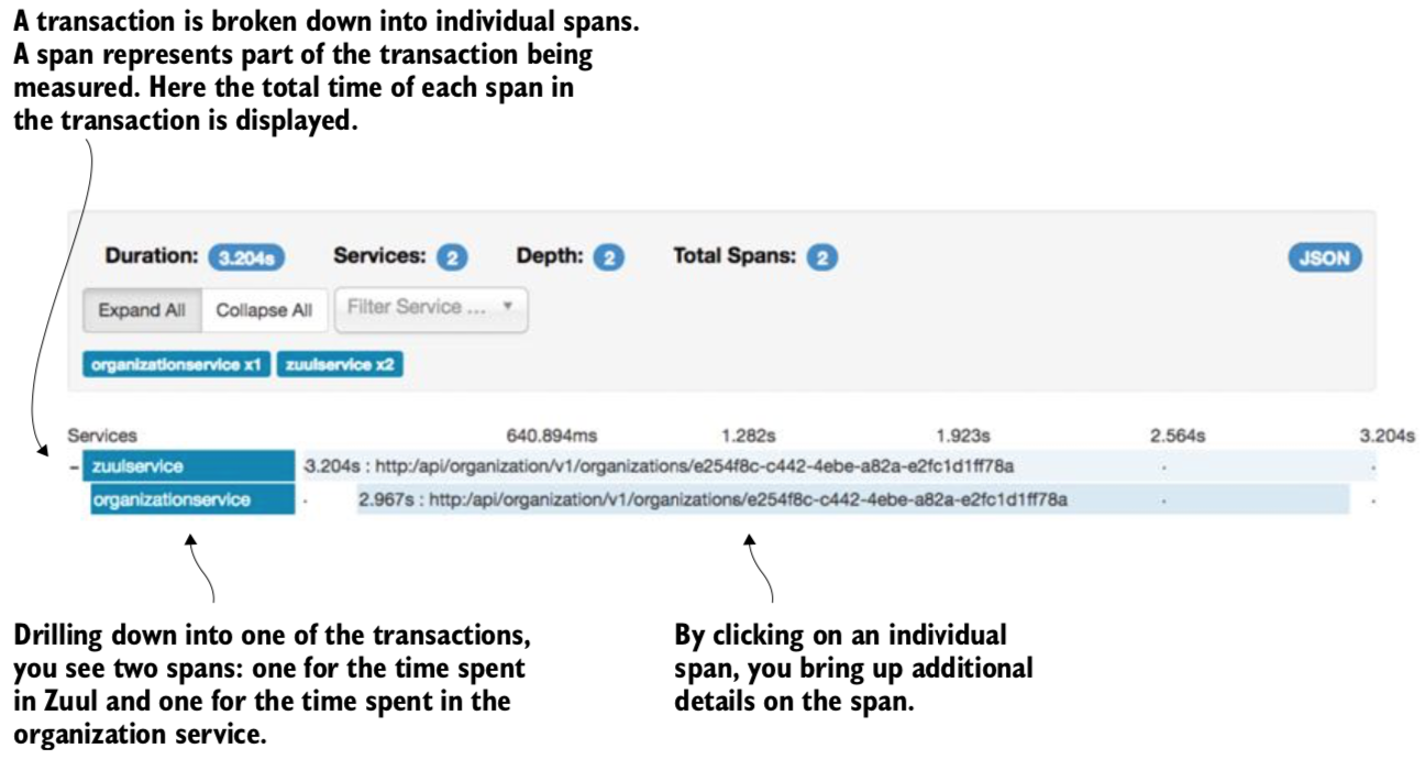사용자 트랜잭션에 속한 모든 서비스와 개별 성능시간을 이해하는것은 분산 아키텍처를 지원하는데 매우 중요.