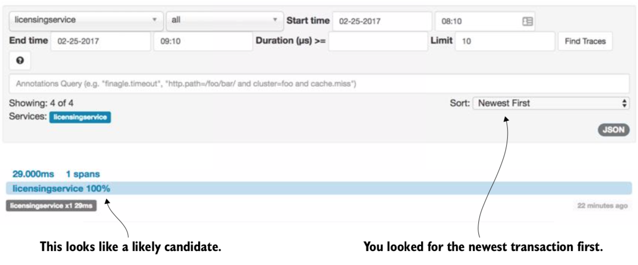 주울로 라이선싱 서비스를 호출한 후 라이선싱 서비스 추적을 위해 집킨에 질의