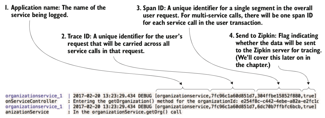 - 상관관계 정보를 스프링 MDC 로그에 추가해 생성된 상관관계 ID가 스프링 부트의 기본 SL4J와 로그백 구현으로 자동적으로 로깅.