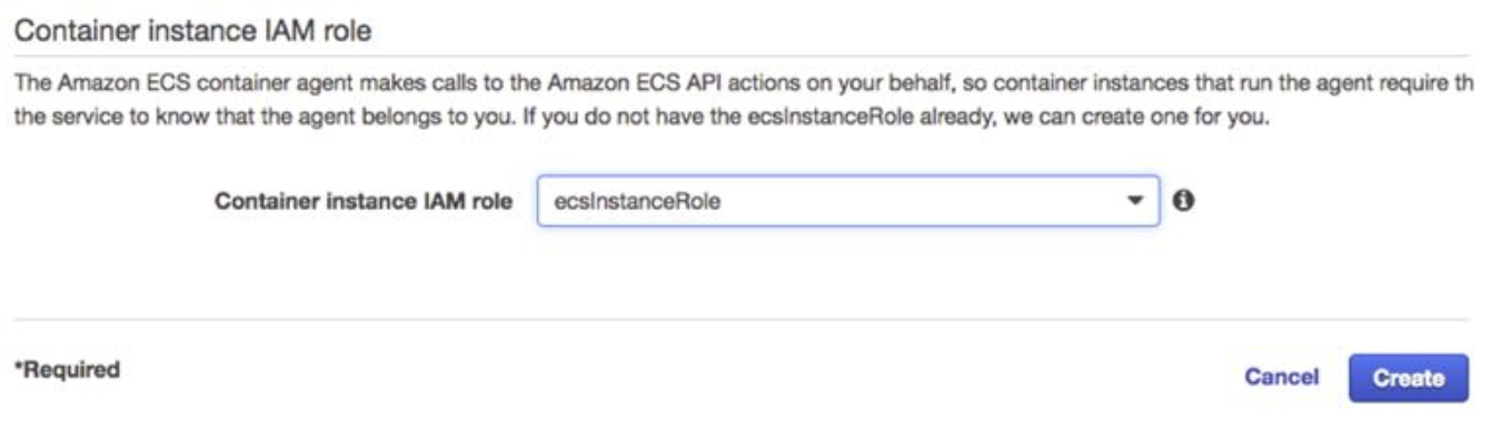 클러스터 생성 화면에서 도커 클러드터를 호스팅하는데 사용할 EC2 인스턴스의 크기를 정함.