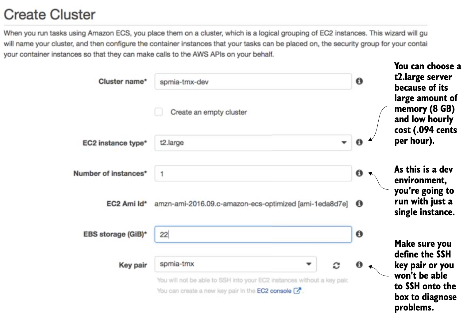 1. 클러스터 이름 2. 클러스터를 실행할 아마본 EC2 가상머신 크기