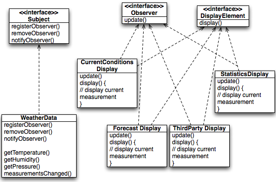 - WeatherData 에 새로운 측정값이 들어올때마다 디스플레이를 갱신.