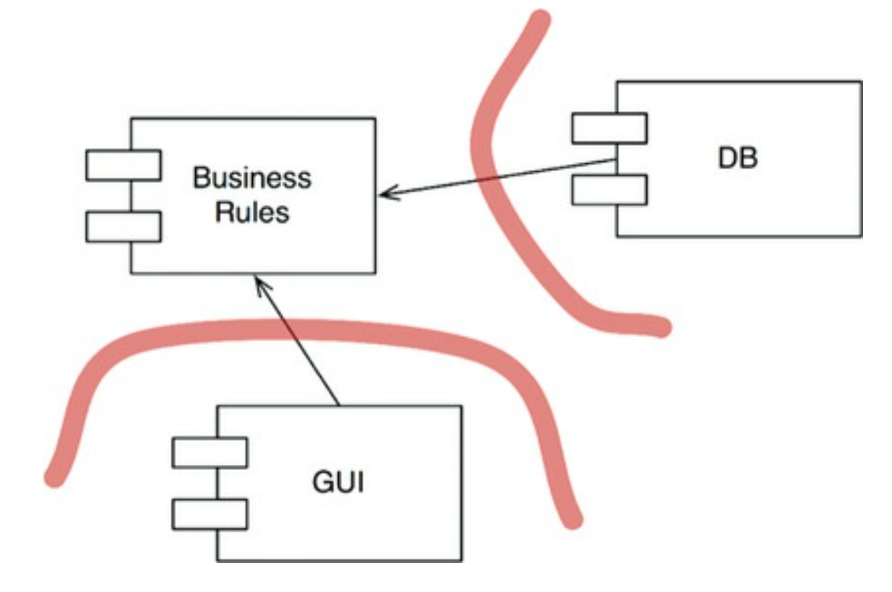 두 컴포넌트 사이 경계선을 그리고 화살표가 BusinessRules를 향하도록 함.